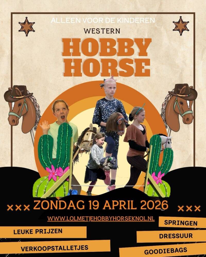 Pak je cowboyboots maar uit de kast!! Op zaterdag 4 april hebben we weer een hobbyhorse wedstrijd met als thema western!! Yiiiaaahhh!! Overdag is voor de